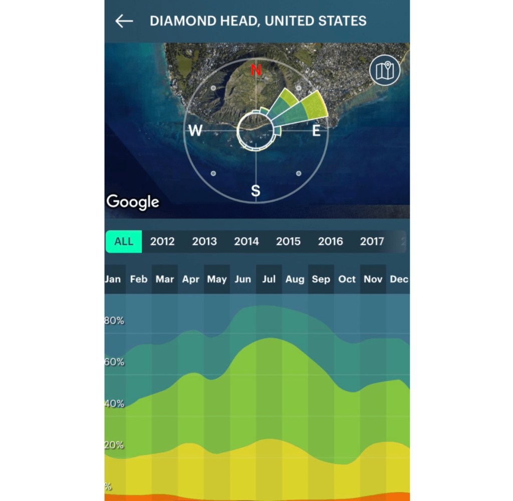 The best configuration of wind and waves is wind stronger than 20 mph (17 knots), blowing parallel to the beach (side shore), with waves breaking in the same direction as the wind. And because I surf with my left foot on the back of the board (goofy foot), the wind needs to blow from the left. This magical mix is rare, found in fewer than a dozen places worldwide. We’ll be visiting them.