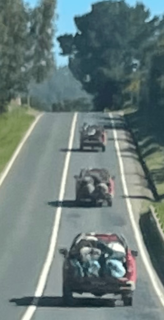 Driving into beautiful Wallmapu, reminiscent of the Pacific Northwest, with dense dark forests blanketing steep ravines cut by peaceful lakes and rivers, there was little sign of the conflict, except for the occasional urban assault vehicle incongruously parked in a village square, and the ubiquitous “FUERA” (get out) graffiti on government property, principally the equally ubiquitous rustic “Parada” (bus stop). Oh, and a steadfast stream of logging trucks plying the winding roads, tormenting the locals.