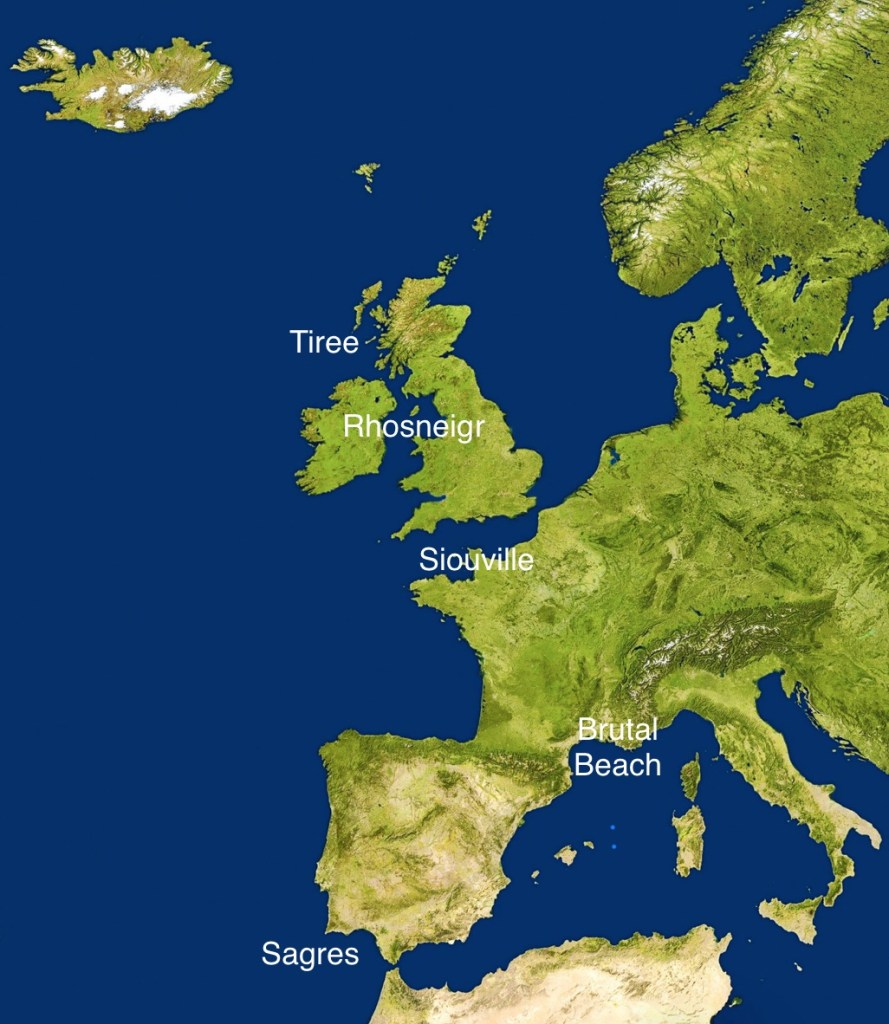 I’m back! After a two year break, almost to the day, I was ready for the next stop on my windsurfing tour. If you missed the first part, here’s the overall plan and I went as far as Hawaii. Next on my list was the west coast of Europe. (Most of the pictures are for illustration purposes and a credit to others.)