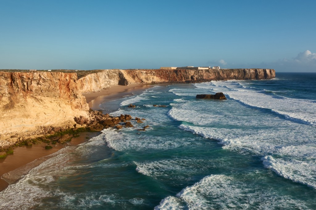 I was finally ready to officially start my west coast trip and I drove south 18 hours to reach Sagres in Portugal, the point furthest west in Europe that used to be known as fim do mundo (the end of the world). Sagres is mainly a surfing town (actually more of a big village) jutting out into the Atlantic and surrounded by small rocky coves enclosed by high cliffs. The waves are permanent and can get very big. The famous big-wave spot you might have seen on TV called Nazaré is only a couple of hours drive north.