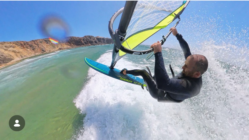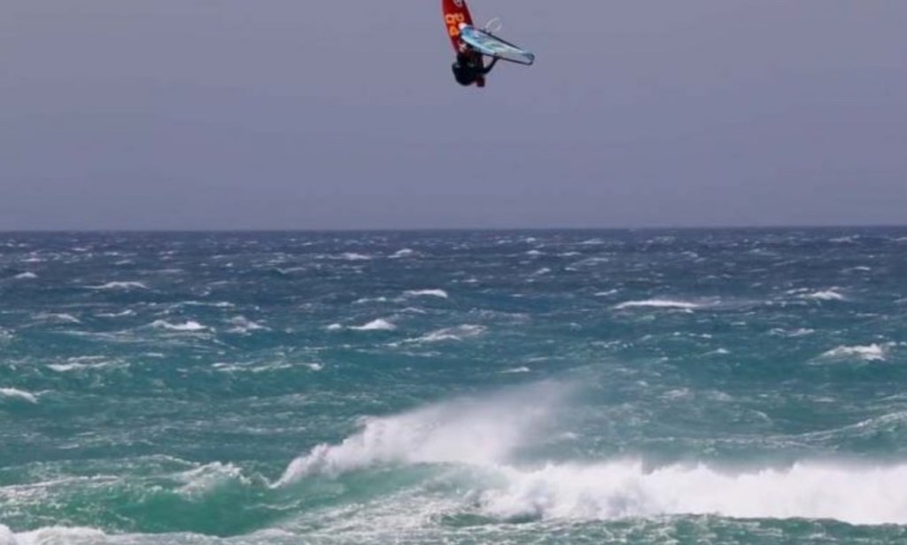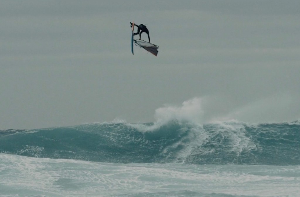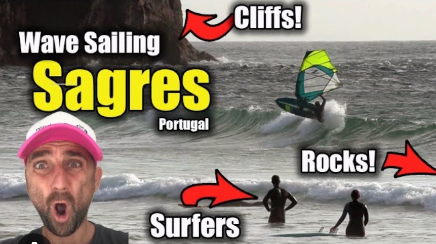 What makes Sagres tricky are those high cliffs, which effectively block the wind. So it might be blowing 30 knots above, and the clouds are flying by but there will be nothing at sea levels, just as a wave comes bearing down on you. And then suddenly a 30 knot gust comes out of nowhere to flatten you, and then nothing again, and repeat. So if you can catch a wave at the same time as the wind blows, but not so strong that it blows you off the wave, it can be quite fun. Otherwise it’s just very hard work.