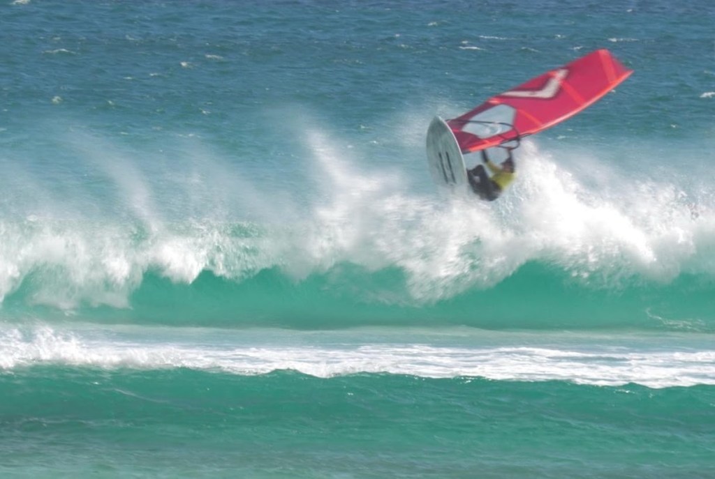 Start with the wind (always). Somehow, it was really windy here when the rest of the coast was quiet, something about the direction of the wind and features of the landscape. Windy and from the left, my favourite in case you forgot. And with perfect waves; clean, peeling, head high; big enough to be interesting but not so big as to be scary. A handful of windsurfers were out already, being watched by no more than a dozen beachgoers on the pristine white sand. The windsurfers were taking it in turns throwing massive aerials – a highly technical maneuvering that has you riding the wave towards shore and taking off on the breaking lip, throwing you high and forward to land on or in front of the wave. It was like watching a perfect wave sailing merry-go round. What more could I ask for?